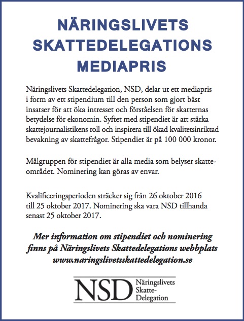Näringslivets skattedelegations mediapris 2016 till Per Gudmundson